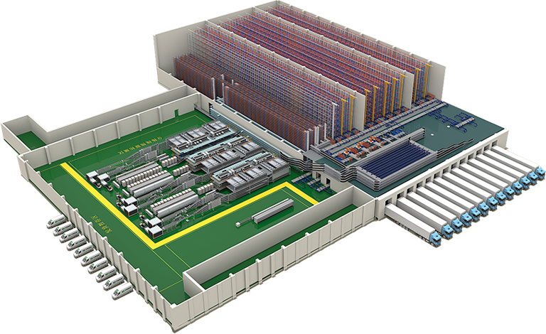 利用自动化设备实现仓储物流高层合理化,存取自动化,操作简便化。主体由输送系统、分拣系统、堆垛机、立体库、机器人、智能仓储管理控制系统组成。