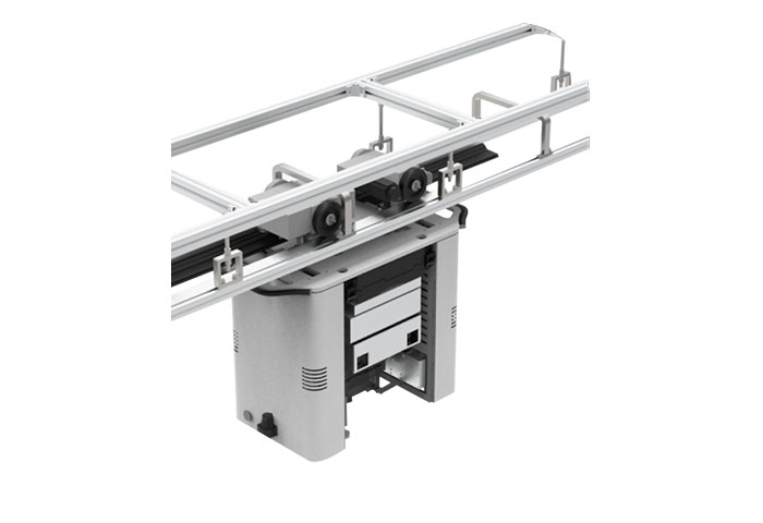 OHT(空中走行式搬运车)是指能够在空中轨道上行驶,并能够通过皮带传动起重机构“直接”进入保管设备或工艺设备的装卸口,应用于工序区内部运输,主要搬运晶圆,也应用于工序区间或工厂间运输。